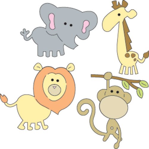 - Designs include an elephant, a giraffe, a lion, and a monkey